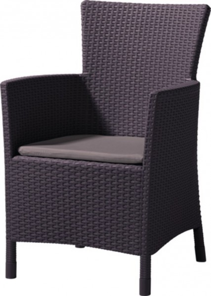 Крісло виконане з погодостійкого пластику, що імітує штучний ротанг, який не вигоряє на сонці, не деформується і може зберігатися на вулиці цілий рік. Чохол на подушці виготовлений із водовідштовхувальної тканини, таким чином крісло Iowa DC ідеально підходить для дачі, саду або заміського будинку, а також може бути встановлене на балконі.