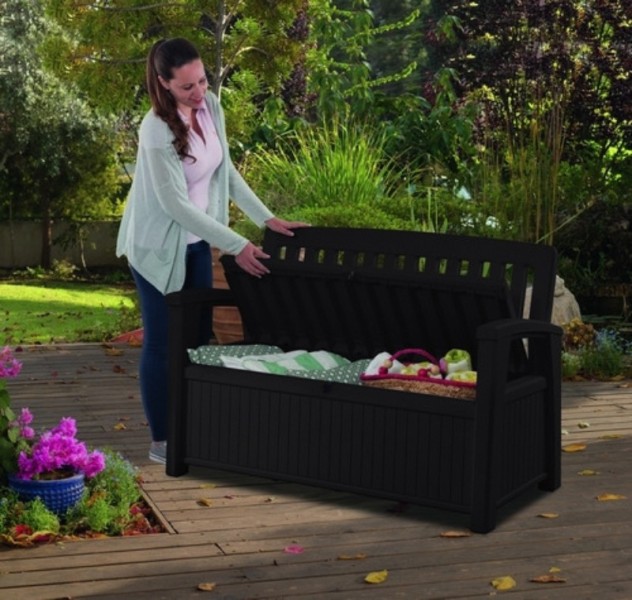 - Ящик-лавка, ідеальний для вуличного зберігання та розрахований на будь-які погодні умови.