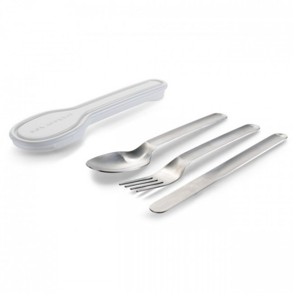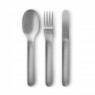 - У набір входить 3 предмети: ложка, вилка та безпечний ніж