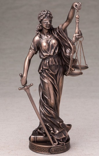 Атрибути Феміди - разючий меч, ваги та пов'язка на очах.