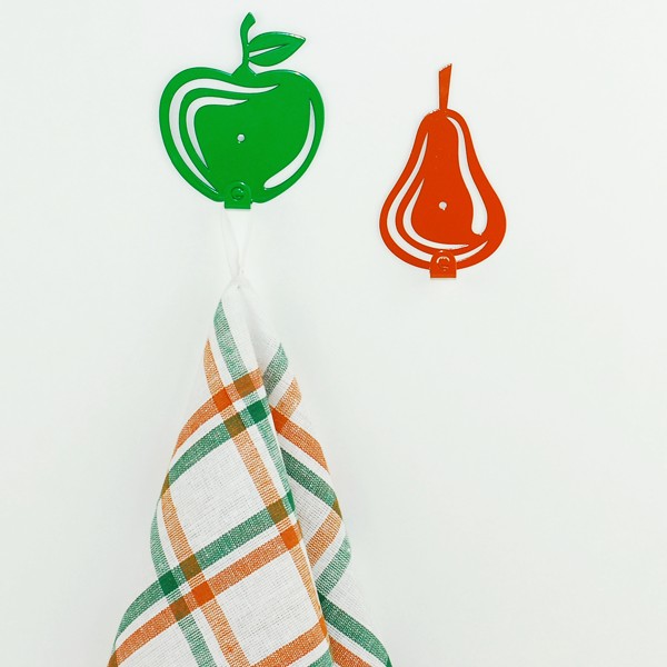 Всі ми просто обожнюємо фрукти за їх неповторний смак, соковитість, користь, асоціації з літом та відпочинком. І, звичайно ж, у кожного з нас є свої улюбленці. Ми втілили ці пристрасті до плодів сонця у новій колекції «фруктових» гачків. У ній кожен знайде щось собі або збере цілу колекцію неповторних літніх ласощів. Хто не любить соковиті та хрусткі яблучка? Фрукт, що описується в улюблених казках, корисний та смачний надихнув нас присвятити йому гарний та незвичайний елемент кухонного декору. Гачок виконаний з металу та пофарбований у соковитий салатовий колір.