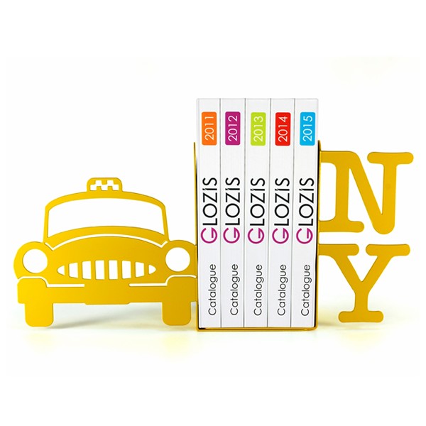 У серії New York знайшли відображення відомі символи великого американського мегаполісу – жовте таксі та літери NY. Шумне місто хмарочосів, яскравих контрастів, центр світової політики та економіки. Фігури обрамляють вишикувані в ряд книги і роблять оригінальним ваш підхід в організації порядку. Жовтий – колір лідера, задає тон та настрій. Наявність автомобіля в композиції робить предмет більш чоловічим. Упори для книг New York порадують наймолодших і солідних чоловіків. Не залишить байдужим подарунок людей, які мріють про Америку, або вже були в найбільшому мегаполісі.