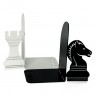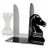 Шахи - давня, інтелектуальна гра з багатовіковою історією, яка знайшла своїх шанувальників по всьому світу. На сьогоднішній день вона є однією з найпопулярніших настільних ігор, оскільки унікально вважає елементи мистецтва, науки і спорту. Її популярність і користь для кожного полягає в тому, що шахи вчать логічно мислити, планувати свої дії, прогнозувати результат, розвивають концентрацію уваги, посидючість, а також сприяють становленню та розвитку особистості. Ми не змогли обминути таке унікальне явище і, звичайно ж, втілили його в наших упорах для книг «Шахати». Упори складаються з двох елементів, виконані з металу з порошковим фарбуванням: човна і кінь, чорне та біле, класичне шахове поєднання кольорів гармонійно доповнять Ваш інтер'єр.