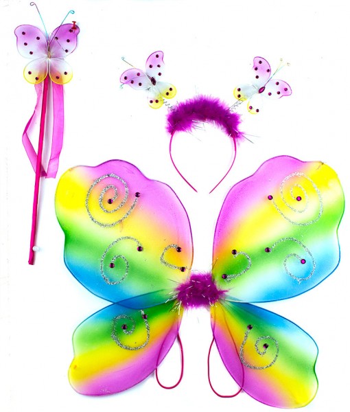 Веселый яркий набор бабочки в комплект которые входит: крылья, обруч, палочка.