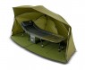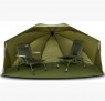 Усередині може вільно розміститися одна коропова розкладачка або два крісла плюс інші необхідні речі. Уподобаний всім оливково-зелений колір, легкість конструкції, її невелика вага – 11 кг та достатні для комфорту габарити – 250х240х120 см, зробили цю модель дуже популярною у любителів риболовлі та відпочинку на природі.