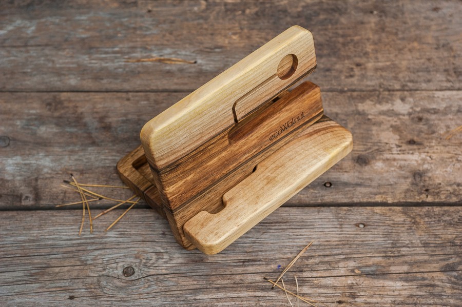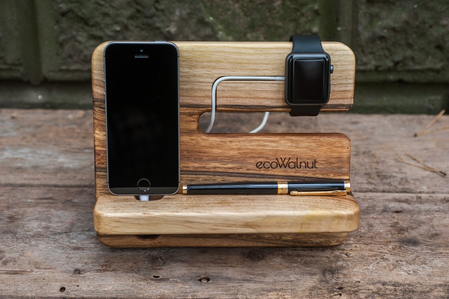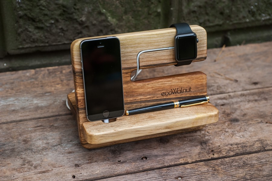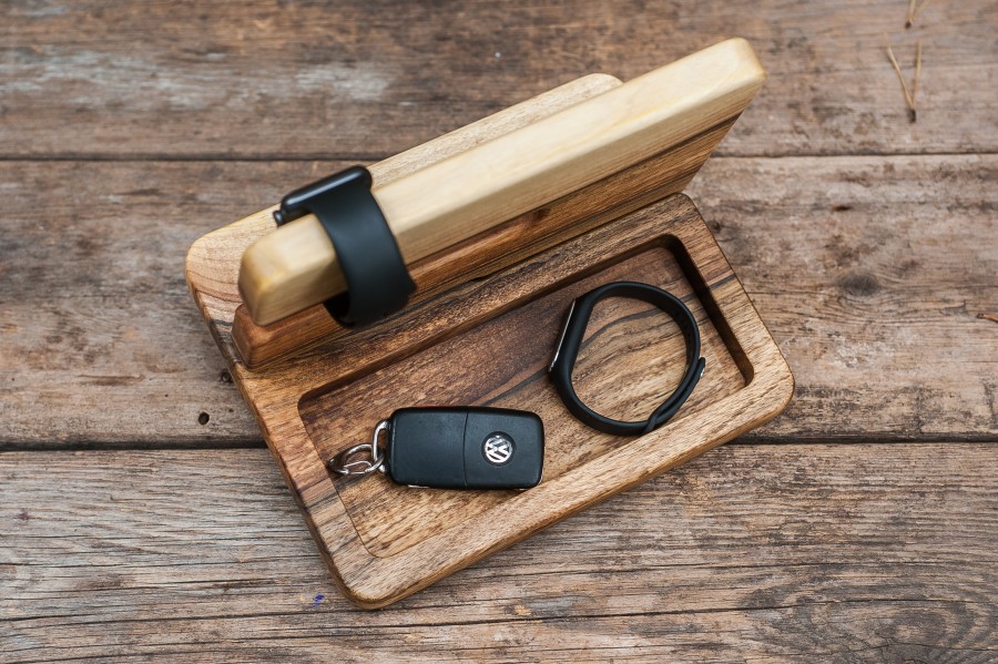 Представляємо Вам сучасний та зручний у використанні, органайзер з дерева волоського горіха, для Вашого смартфона, годинника та інших дрібниць, які Ви можете розмістити на задній частині Вашої підставки.