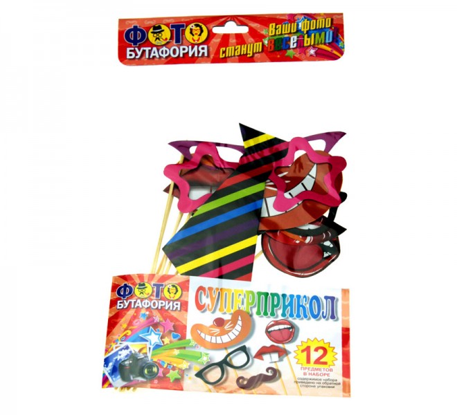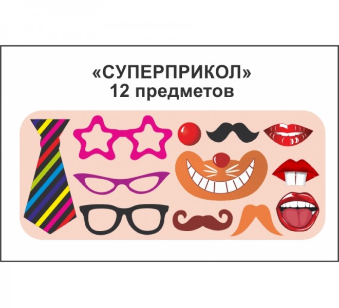 Забавная бутафория для фото сессий понравится и взрослым и детям. Создавайте яркие праздничные образы с помощью 12 предметов которые входят в набор.