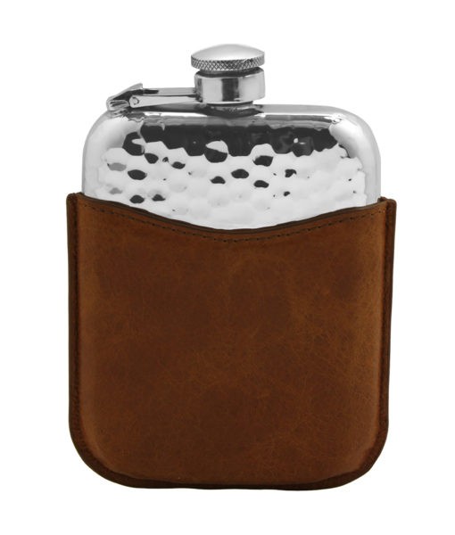 Прямокутна фляга з карбуванням в шкіряному чохлі від торгової марки English Pewter.