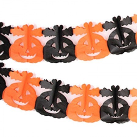 Гірлянда - найпопулярніший і найпопулярніший декор на Хелловін. Гірляндою можна прикрасити будь-яку частину інтер'єру, і скрізь вона виглядатиме гармонійно! Класна паперова гірлянда - склеювання на Halloween. Довжина гірлянди: 3 метри. Відмінно підійде для прикраси залів, пабів, ресторанів та нічних клубів на Хелловін. Така прикраса, напевно, запам'ятається Вашим гостям і додасть яскравих фарб у Ваш інтер'єр.