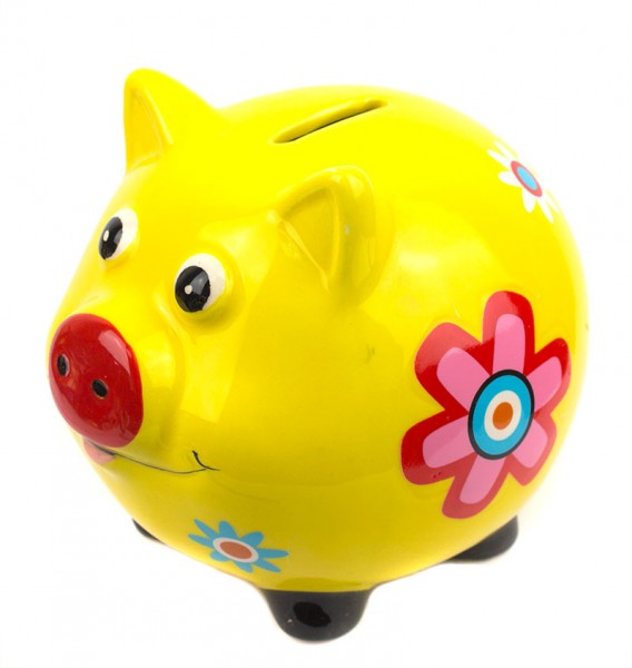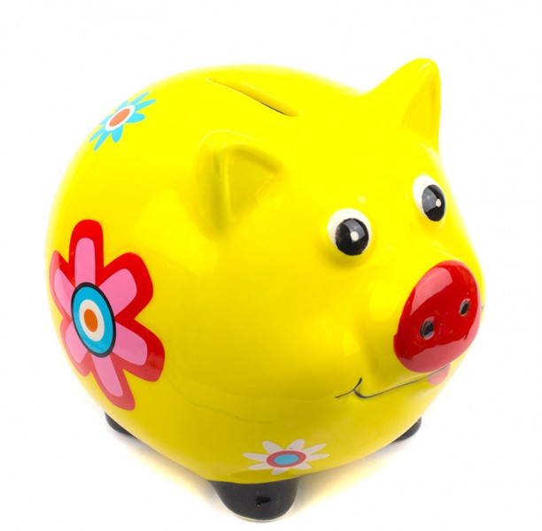 Скарбничка Свинка символ року з квіткою 10 см жовта .