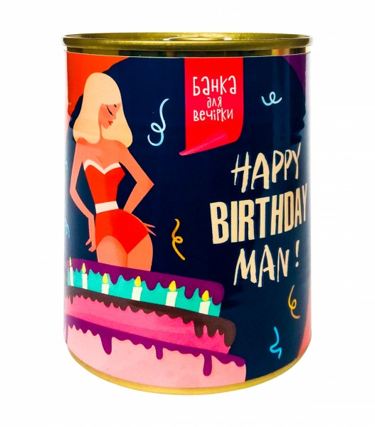 Характеристики товару Банка для вечірки " Happy birthday man! "