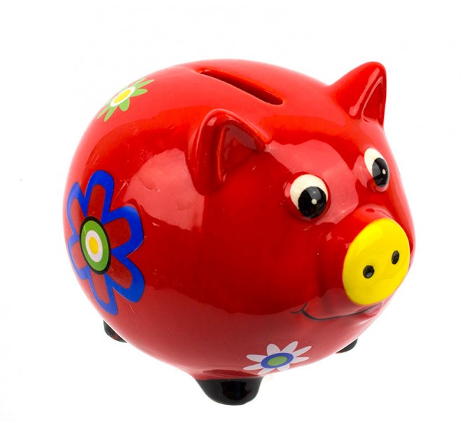 Характеристики товару Копилка Свинка с цветком 13см красная