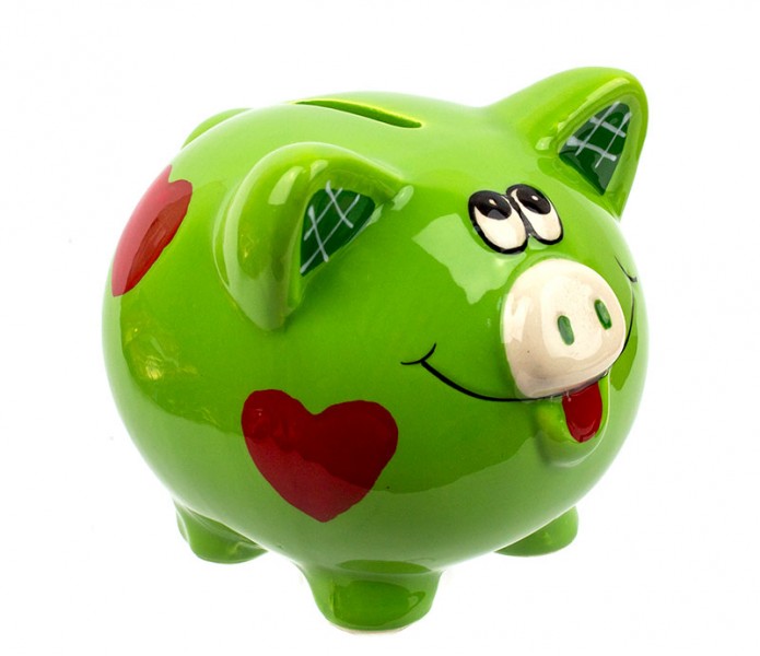 Характеристики товару Копилка Свинка с сердечками 10см зеленая