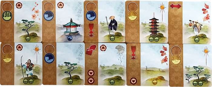 Ваше основне завдання – відвідувати уроки майстра, щоб потім застосовувати здобуті знання у своїх роботах. Кожен раунд Хокусай викладатиме уроки, розкладаючи карти на килимку бамбука: одна карта відповідає одному уроку. У процесі навчання учасники проходитимуть уроки, піднімаючи карти з килимка та викладаючи їх біля себе. При цьому карти поділені на дві половини: майстерню та художню. Якщо ви використовуєте першу, то зможете отримати додаткові пензлі, оновити інвентар та взагалі проапгрейдити свою майстерню. Якщо ж використовуєте другу половину, можете зайнятися малюванням, щоб доповнити своє полотно новими пейзажами.
