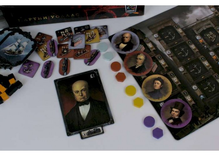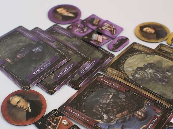 Стартовий капітал обмежується тридцятьма фунтами. На нього можуть розраховувати усі учасники гри. І крім того, кожен отримує по 8 карток і кілька жетонів підприємств, персонажів та повідомлень певного кольору. Підприємства, що попередньо відсортовані, можна розмістити на ігрових планшетах. Усі переможні очки та доходи відзначають біля поля для гри (на треку).
