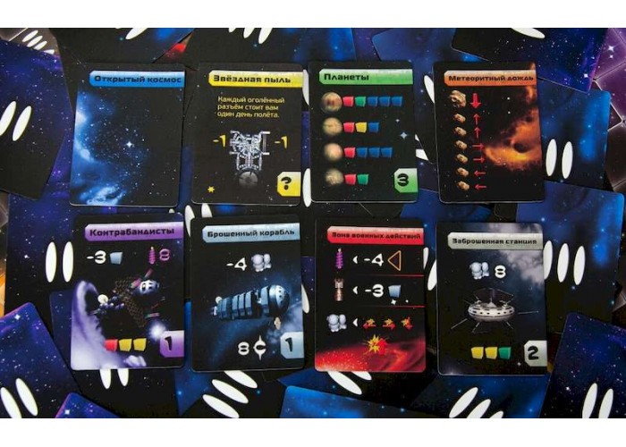 Ще хочеться звернути увагу на велику кількість і якість компонентів. Загалом у грі дуже багато плашок з відсіками, на чудовому картоні та з відмінною висічкою, а також пластикові фігурки космонавтів, інопланетян та корабликів, дерев'яні кубики товарів та прозорі «скляшки» зарядів батарей. Правила, як і сама гра, теж зроблені дуже оригінально: спочатку рекомендується ознайомитися з принципами побудови кораблів і в жодному разі не читати далі! Потім провести пробний політ, і лише потім розпочати гру заново, ознайомившись із остаточним варіантом правил.