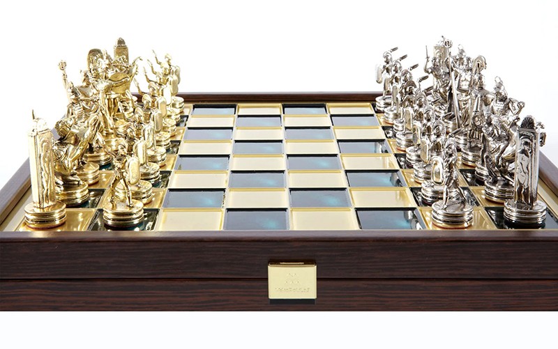 Комплектація: 32 шахові фігури з цинкового сплаву, латунна шахівниця