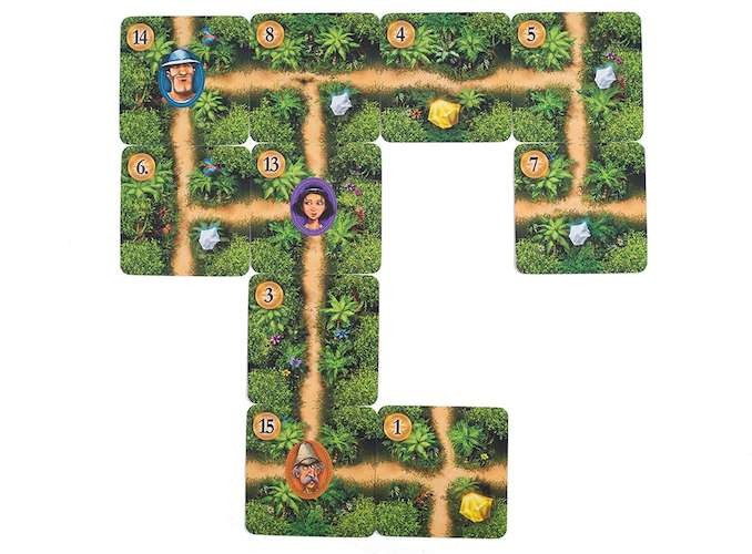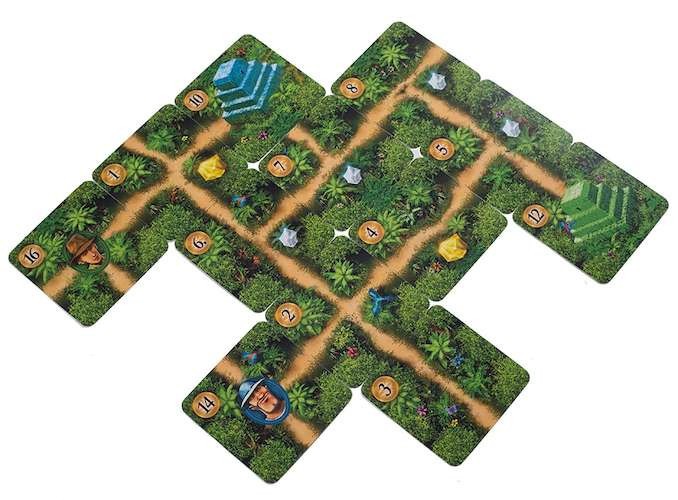 Кожен гравець має колоду з 16 пронумерованих карт свого кольору. Гравці одночасно беруть зі своєї колоди по 3 карти: одну повертають у колоду, а 2 інші одночасно розкривають. Гравець, сума номерів відкритих карт якого менша, ніж в інших, зобов'язаний скинути одну з карток. У разі нічиєї всі гравці з мінімальною сумою скидають по карті. Потім усі гравці викладають відкриті карти у свої ґрати 4х4 клітини, приєднуючи по горизонталі або вертикалі до вже викладених карток (не по діагоналі). Таким чином партія триває лише 8 ходів. Крім стежок, на картах є храми та дослідники, промарковані різними кольорами. Наприкінці гри гравці отримують окуляри за дослідників, з'єднаних стежкою з храмом потрібного кольору, а також за золоті самородки та алмази "зустрічені" дослідником на шляху до храму. Інші дослідники блокують шлях один одному.
