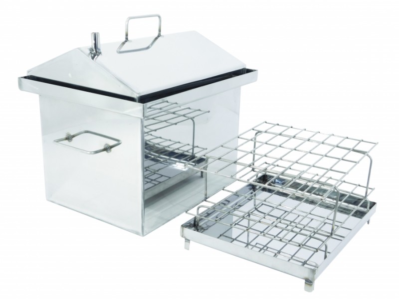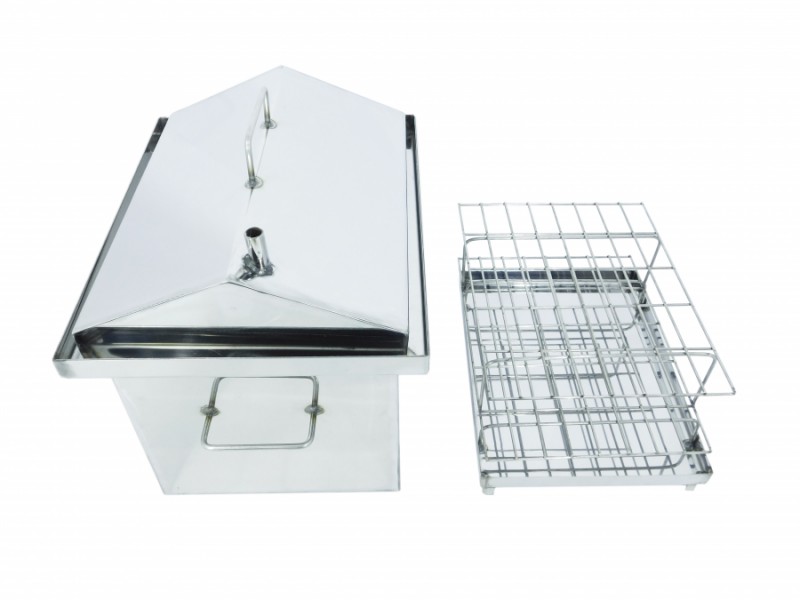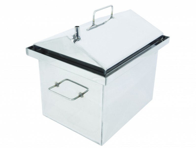Конденсат, що капає на продукти, під час копчення більше не завдаватиме незручностей. Краплі вологи стікають у гідрозатвор і не падають на продукти. Висота кришки «будиночком» - 100 мм.