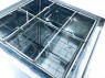 Знімні решітки дозволяють розвішувати продукти на гачках, використовуючи нижні яруси для розкладки продуктів.