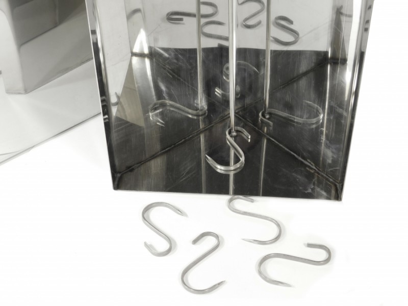 Унікальна особливість: крім укладання на ґрати, продукти можна коптити у підвішеному стані на спеціальних гачках.