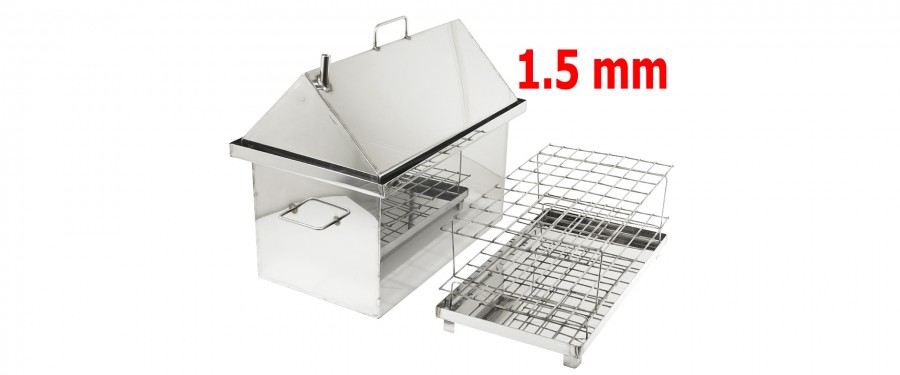Матеріал корпусу – харчова нержавіюча сталь завтовшки 1.5 мм. Надійність гарантовано. Коптильня прослужить до 25 років.