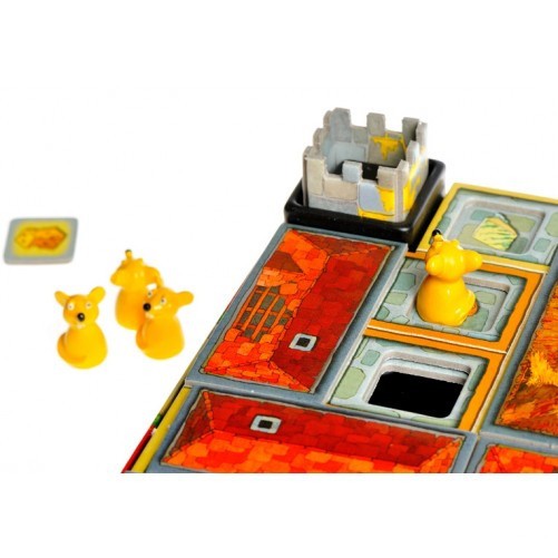Перед ходом у кожного учасника є по чотири очки, які можна витратити на низку дій. Перше – зняти дах замку, що межує з вежею гравця. Робити це потрібно в будь-якому випадку, тому що мишки не вміють пересуватися по дахах. Друга дія – пересунути мишеня вправо або вліво на одну кімнату, не закриту дахом. Третє – помістити одного незадіяного мишеня на будь-яку вільну вежу. І, нарешті, четверта дія – пересунути кімнати замку. Це можна виконати за допомогою одного вільного тайлу, який залишився лежати поряд із ігровим полем. Варто просто вставити картку – тайл в один із трьох отворів на стіні замку, позначених червоним прапором. Виконавши цю дію, всі кімнати однієї лінії рухаються убік на один поділ, а остання випадає. Якщо в результаті такої дії під пахвою виявляється прірва – вона падає та назавжди залишає гру. Після кожного ходу всі вільні від мишей кімнати назад накриваються дахами. Перемога дістається тому, хто збере чотири різні сирні картки. Кожну їх можна отримати, опинившись двома своїми мишками в кімнатах з однаковим сортом сиром. А ось якщо три ваші миші провалилися в пастку - гра Сирний замок для вас закінчено.