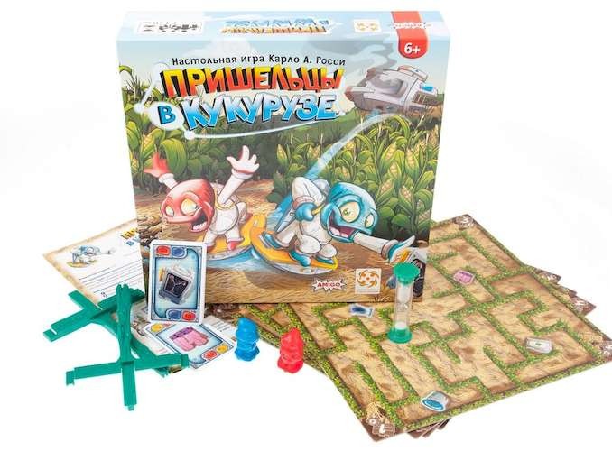 Міно і Таурі, два бешкетні прибульці з планети Кретон, займалися своєю улюбленою справою - малювали кола на кукурудзяних полях. Але ось невдача, хтось із них забув закрити люк, і тепер обладнання їхнього корабля виявилося загубленим у кукурудзі! Перш ніж повернутись додому, їм потрібно знайти 12 важливих предметів. Ми обов'язково маємо допомогти їм! У кооперативній грі «Прибульці в кукурудзі» вам доведеться пройти разом заплутаний лабіринт і зібрати якомога більше предметів, щоб допомогти невдах інопланетянам. Пересувайте магнітні фігурки Міно та Таурі двостороннім ігровим полем, прокладайте маршрут і спілкуйтеся один з одним, адже тільки один гравець знає найкоротший шлях, але щоб пройти ним, потрібна командна робота. Слідкуйте за часом, будьте уважні та дійте спільно!