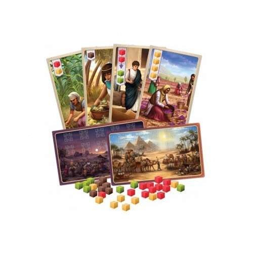 Відразу після вищеописаних дій, готується колода торговців (з бузковою сорочкою). Для цього, стартові карти відбираються і лунають по 2 кожному гравцю, а ті, що залишилися, перемішуються і складаються під картами завдань. Колода ж торговців формує низку пропозицій. Чаші прянощів розміщуються так: Куркума - Шафран - Кардамон - Кориця. Чим вищий товар у списку – тим він дорожчий.