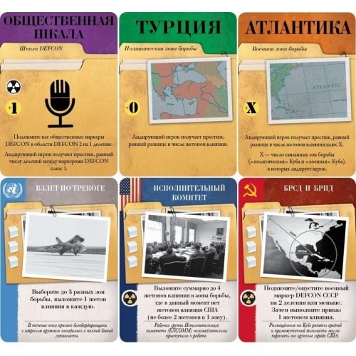 - 39 карт стратегій (13 карт ООН, 13 карт США та 13 карт СРСР)