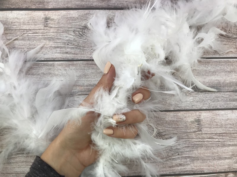 Боа перьевое белое - аксессуар для костюма в стиле Мафия - Чикаго, Гэтсби и кабаре Мулен Руж.