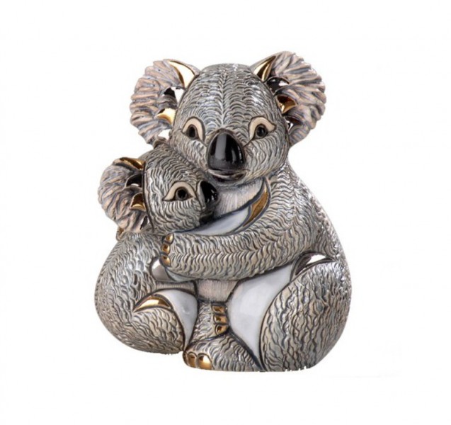 Фігурка De Rosa Rinconada Families Ведмідь Коала з малюком - брендова статуетка ручної роботи від виробника уругвайського De Rosa Rinconada (Де Роса Рінконада) виконана за унікальною технологією. Фігурка обпалювалася в печі, після чого покривалася емаллю і розписувалася уругвайськими майстрами вручну, завдяки такому способу виготовлення кожна фігурка унікальна і неповторна, і неможливо знайти дві однакові фігурки.