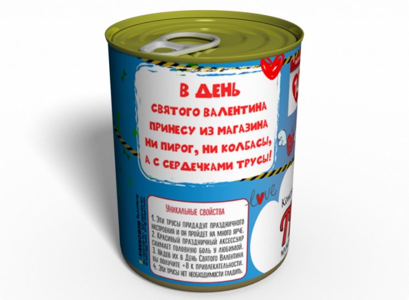 Що подарувати день Закоханих – питання, яке цікавить кожного з нас. Хочеться щоб презент був приємним і практичним, і, звичайно ж, щоб запам'ятався на довгі роки. Консервовані труси – дивовижний варіант! Вони будуть корисними у повсякденному житті, а також неодмінно здивують свого отримувача.