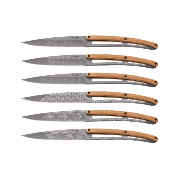 Набор ножей Set of 6 deejo Table, titan finish, olive wood, Art Deco.