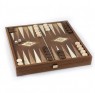 Дошка нард виконана зі шкіри та дерева, розмір 48х30 см. Шашки виготовлені із пластику. Упаковані нарди в подарункову сумку з логотипом компанії Manopoulos.