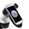 Крім того, в комплектацію входить адаптер для смартфона (планшета). Адаптер кріпиться на тубусі мікроскопа і дозволяє проводити фото і відеозйомку головною або передньою камерою гаджета. Гладка тильна сторона смартфона надійно кріпиться за допомогою безлічі присосок адаптера (у разі рифленої тильної поверхні смартфона рекомендується використовувати передню камеру).
