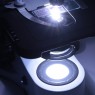 Светодиодная подсветка микроскопа X-Led3 плавно регулируется по яркости с помощью регулятора яркости и по интенсивности с помощью ирисовой апертурной диафрагмы. Специально разработанные 45-ти миллиметровые фильтры для данной серии микроскопов, помещается в апертуру осветителя. Подвижный центрируемый конденсор Аббе с нанесенной шкалой дает возможность точно перенести световую проекцию в плоскость наблюдаемого образца.