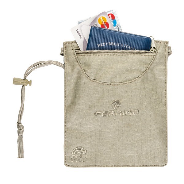 Ferrino Matrix RFID - спеціальна потайна сумка для документів, яка дозволяє у походах, поїздках зберігати паспорти, банківські картки, ключі, смартфон та гроші при собі, а також захистити банківські картки від крадіжки грошей за допомогою RFID-захисту. Сумка дуже тонка, її легко можна носити під одягом. Оскільки сумка може контактувати зі шкірою - для її виробництва обраний натуральний екологічний матеріал - бавовна, а зворотна сторона зроблена сітчастою. Матеріал досить міцний, оскільки має структуру переплетення ripstop. Наш шнурок плоский і порожнистий, завдяки чому не натирає шию. Його довжина регулюється фіксатором. Сумка має дві кишені, в яких без проблем можна розмістити паспорт, шестидюймовий смартфон та інші важливі дрібниці.