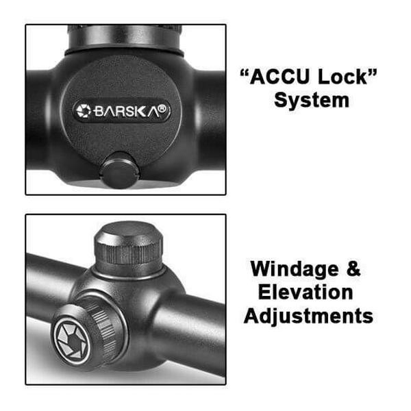 Під захисними алюмінієвими кришками знаходяться барабани введення поправок по вертикалі та горизонталі. Барабани мають ціну поділу 0.5 МОА. Система Acu-Lock є пружною довговічною крученою пружиною, яка забезпечує точне повернення механізму введення поправок після імпульсу віддачі під час стрільби. Також конструкцією передбачена можливість калібрування барабанів для фіксації початкової точки введення поправок на позначці "нуль".