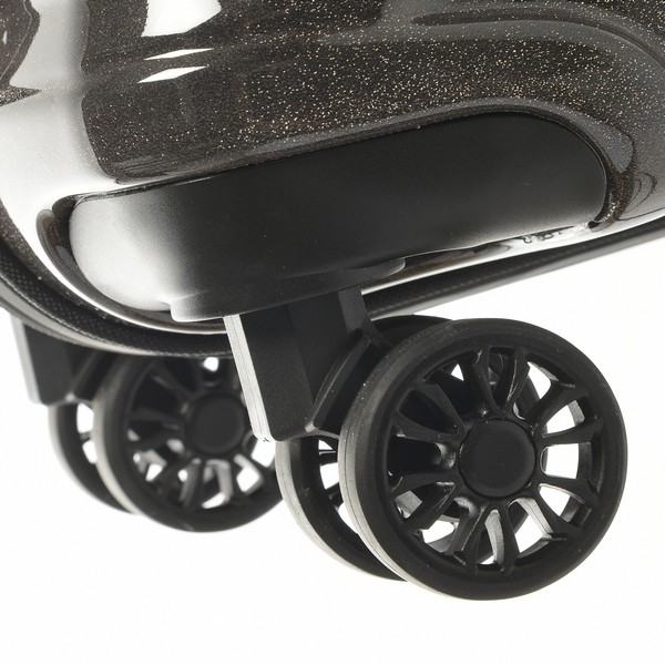 DUALTRAK™ WHEELS - для більш впевненого зчеплення та кращої маневреності на всіх поверхнях, ця модель оснащена чотирма здвоєними колесами збільшеного діаметра, що обертаються на 360° незалежно один від одного. Двокомпонентні колеса DUALTrak™ складаються з міцної та полегшеної основи зі спицями, одягненої в поліуретанову "шину", що відрізняється зносостійкістю та низьким рівнем шуму при русі. Для максимальної маневреності та плавності ходу кожна з двох перпендикулярних осей обертання обладнана підшипником. Крім того, ці колеса мають нижчий центр ваги, ніж більшість інших, що позитивно позначається на стійкості валізи, у тому числі під час руху.