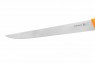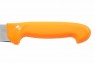 Лезвие изготовлено из высококачественной нержавеющей стали, обладает высокой устойчивостью к коррозии, долго остается острым. Рукоять эргономичной формы из полиамида максимально гигиенична, удобно лежит в руке. Яркий цвет рукояти делает нож заметным среди других кухонных принадлежностей на кухне и поможет без труда найти этот нож.
