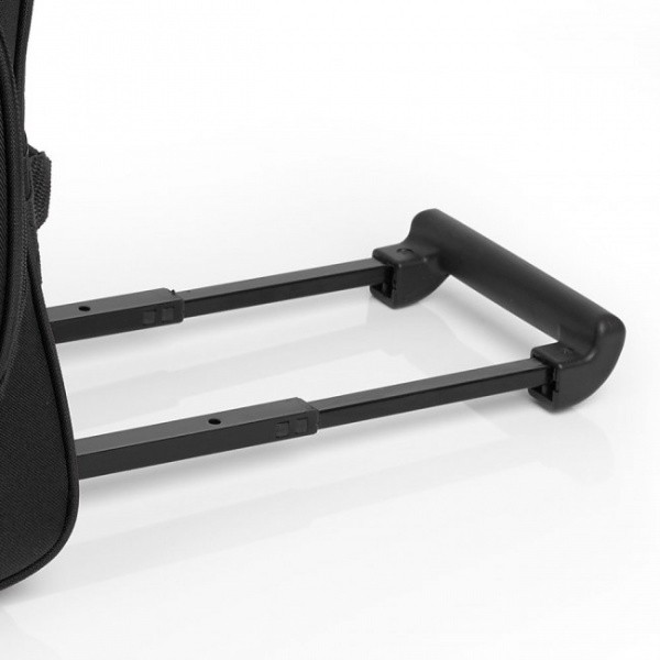 Сумка оснащена парою надійних роликових коліс. Колеса виготовлені із високотемпературного термопластичного поліуретану (TPU). Матеріал має міцність порівнянну з пластиком, гнучкістю силікону, а також має підвищену стійкість до перепадів температур. Відмінною особливістю коліс із TPU матеріалу є зниження шуму до мінімуму при коченні валізи по нерівній поверхні. Завдяки стійкості до стирання матеріал коліс відрізняється тривалим терміном експлуатації.