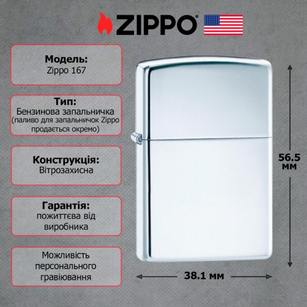 Запальничка Zippo 167 CLASSIC Armor High Polish.