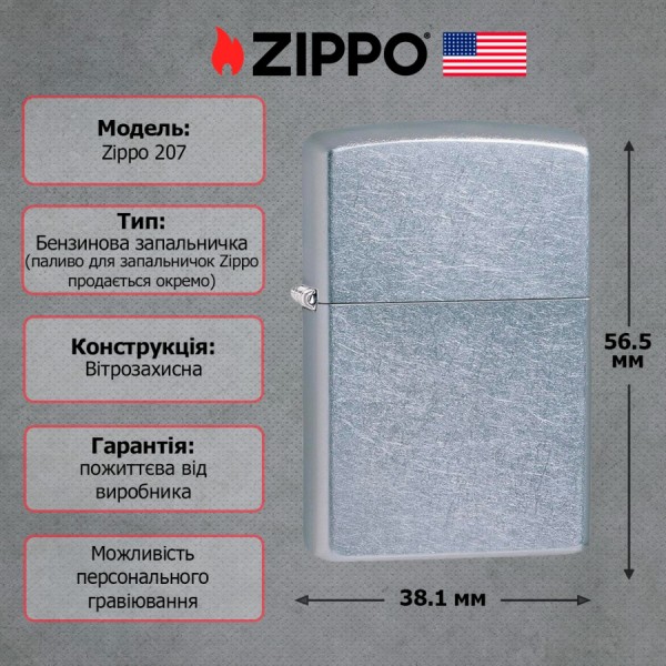 Характеристики товару Запальничка Zippo CLASSIC street chrome 207