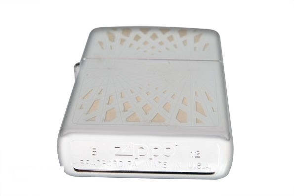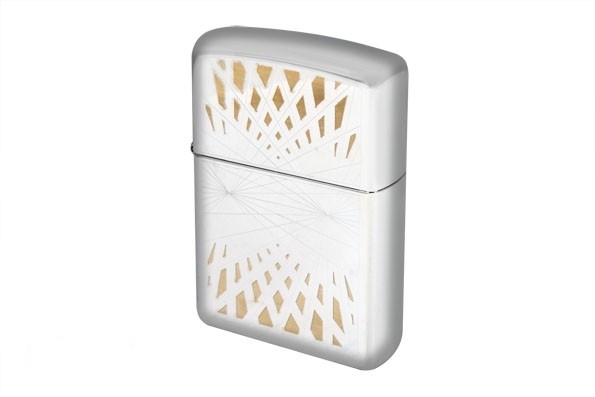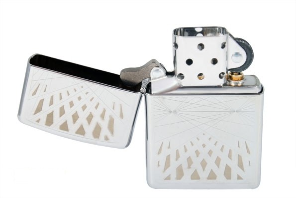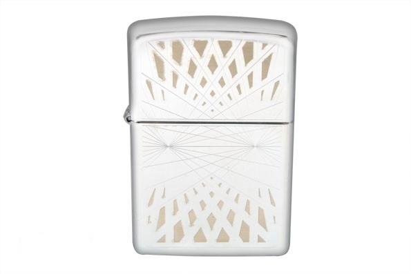 Вітрозахищена глянсова хромована запальничка. Хром та глянець надають запальничці престижний зовнішній вигляд. На передній частині корпусу запальнички методом лазерного гравіювання виконаний оригінальний візерунок - стилізоване зображення павутинки.