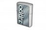 Вітрозахищена матова хромована запальничка ZIPPO Z3D ABSTRACKT 1 ZIPPO EMBLEM BRUSHED CHROME. Малюнок на металевій накладці - Zippo логотип на фоні абстрактної 3-мірної насічки.