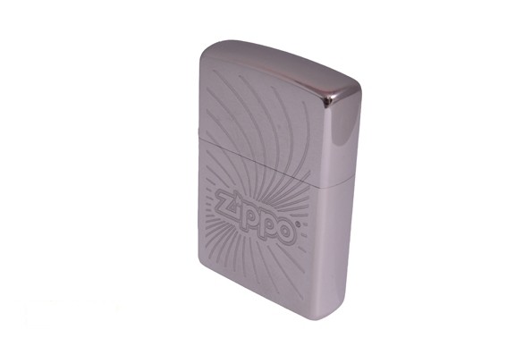 Матова хромована срібляста запальничка із характерною патентованою поверхнею Brushed Chrome™. Малюнок - спіраль, напис Зіппо.