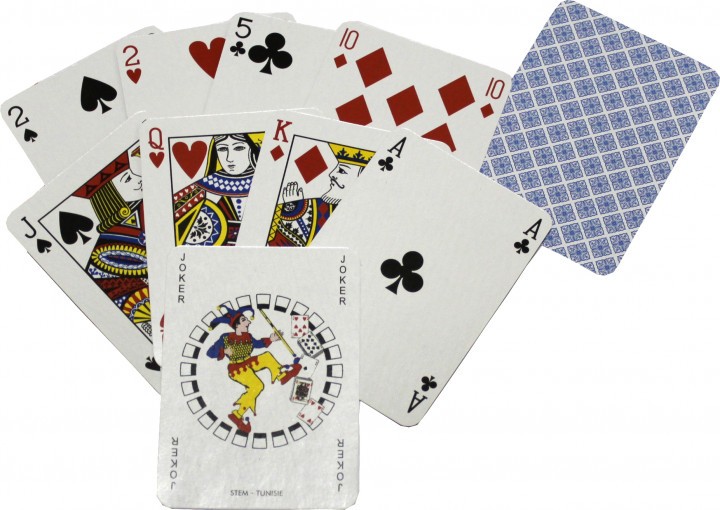 Повна колода підходить для всіх ігор. 52 основні карти характеризуються однією з чотирьох мастей (двох кольорів) та однією з 13 переваг. 2 спеціальні карти, так звані джокери, які зазвичай розрізняються по малюнку.