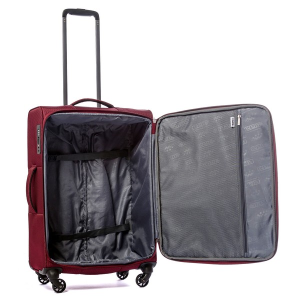 - Встроенный кодовый замок системы TSA; Эластичные компрессионные ремни для фиксации багажа; Выдвижная телескопическая ручка; Есть карман-органайзер