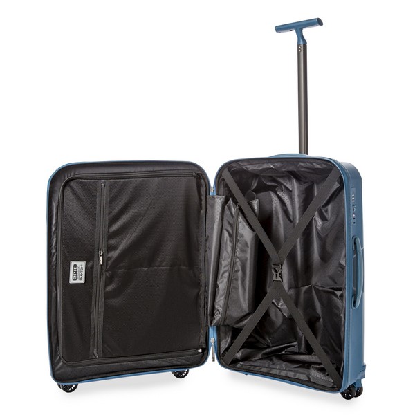 - Встроенный кодовый замок системы TSA; Эластичные компрессионные ремни для фиксации багажа; Выдвижная телескопическая ручка; Есть карман-органайзер